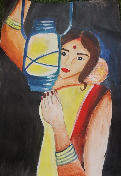 The painting in question, by Aastha Pai, is forthcoming in Blue Bell’s March